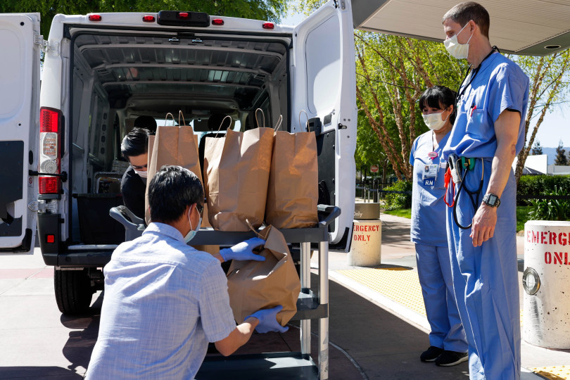 Hiểu được sự vất vả của các y bác sĩ đang ở tuyến đầu chống dịch Covid-19 ở Mỹ, nhiều nhà hàng tại thành phố San Jose, tiểu bang California (Mỹ) đã tình nguyện ủng hộ đồ ăn cho đội ngũ y tế, và trong số đó có một nhà hàng do người gốc Việt sở hữu.