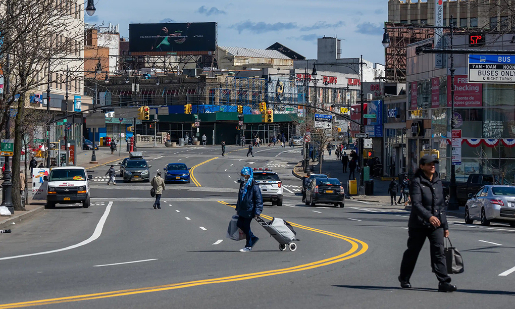 Tại các quận khác nhau, hoặc ngay cả trong các vùng trong mỗi quận đều đang trải nghiệm sự tồn tại của Covid-19 theo các cách khác nhau. Tại các khu vực giàu có, đường phố vắng tanh, các điểm đỗ xe từng phải giành giật nhau chỗ giờ bị bỏ trống, sau cuộc di cư tới những căn nhà nghỉ dưỡng cuối tuần. Ngược lại, ở những nơi như Bronx, nơi có tới 84% người da đen, người Latin hoặc chủng tộc hỗn hợp, vỉa hè vẫn nhộn nhịp người đi làm. Nơi đó vẫn tồn tại "giờ cao điểm". "Chúng tôi thường gọi họ là những nhân viên dịch vụ. Bây giờ họ là những người lao động thiết yếu, chúng tôi buộc phải để họ tự bảo vệ ḿnh", Williams nói.