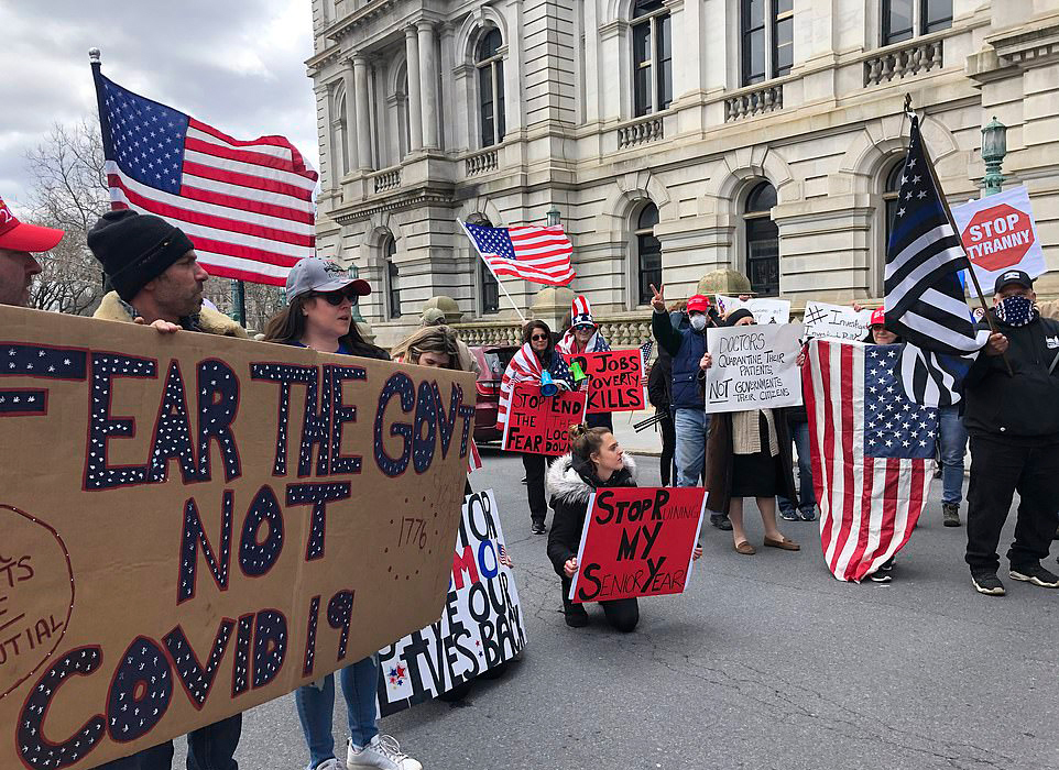 Người biểu tình đòi tái mở nền kinh tế, chấm dứt tình trạng thất nghiệp tại thành phố Albany, bang New York, hôm 22/4. Ảnh: AP