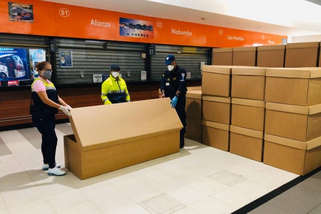 Theo AFP, giới chức thành phố Guayaquil hồi đầu tháng cho biết đã tiếp nhận 1.000 thùng các-tông được các cơ sở sản xuất tại địa phương quyên tặng và phân phát cho 2 nhà tang lễ. Số thùng này sẽ được sử dụng làm quan tài khi số ca tử vong vì Covid-19 tăng lên.