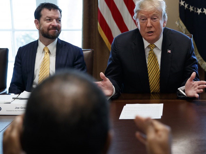 Tổng thống Mỹ Donald Trump (phải) và cố vấn Nhà Trắng Joe Grogan (trái). Ảnh: AP