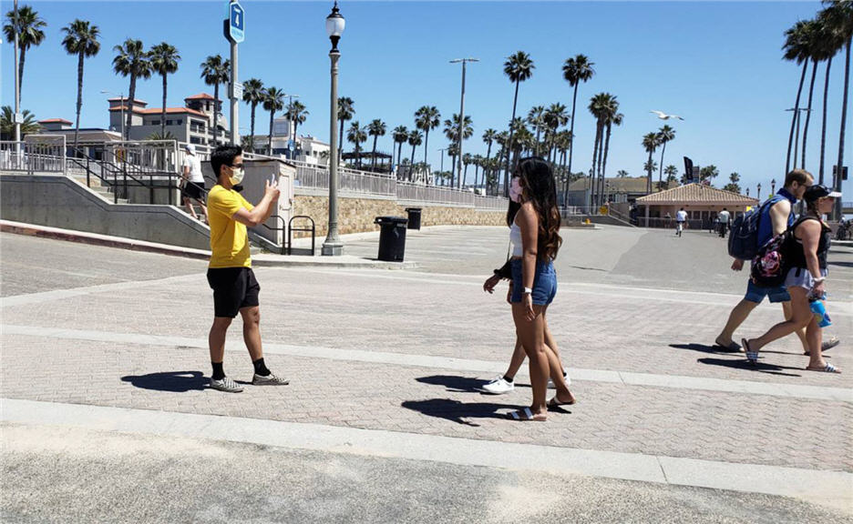 Rất nhiều người gốc Việt ở mọi lứa tuổi kéo nhau ra bãi biển Huntington Beach hóng gió cuối tuần đầu tiên do trời Orange County bỗng nóng gay gắt sau một thời gian dài lạnh lẽo trong lúc đại dịch COVID-19 hoành hành .