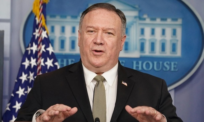 Ngoại trưởng Mỹ Mike Pompeo tại một cuộc họp báo ở Nhà Trắng ngày 8/4. Ảnh: Reuters.