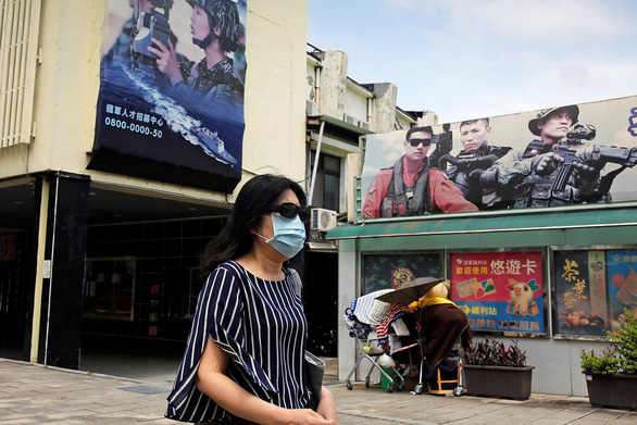 Các bảng quảng cáo tuyển quân của cơ quan quốc phòng Đài Loan trưng trên phố ở Đài Bắc ngày 20-4 - Ảnh: Reuters