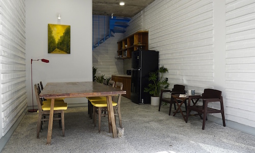 Bên trong, không gian tầng trệt được thiết kế mở và linh động, có thể sử dụng làm nơi tiếp khách, nấu nướng, ăn uống và làm việc.