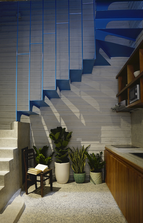 Màu xanh của cầu thang cũng trở thành điểm nhấn cho căn nhà.