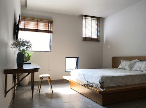 Căn nhà có hai phòng ngủ bao gồm toilet riêng. Nội thất các phòng này đều đơn giản để tạo cảm giác rộng rãi.