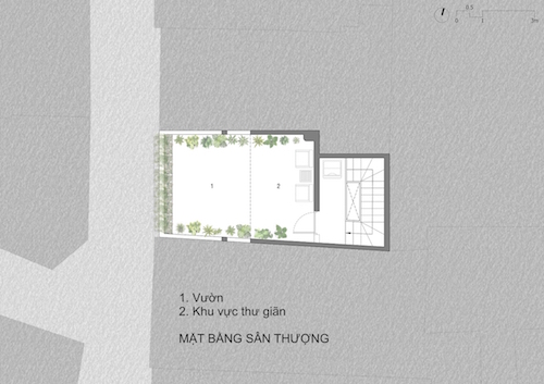 Sân thượng vừa là vườn, vừa là khu vực thư giãn. Dù mảnh đất có hình thù không thuận lợi, gia chủ vẫn xây được nơi ở như ý với chi phí chưa đến hai tỷ đồng.