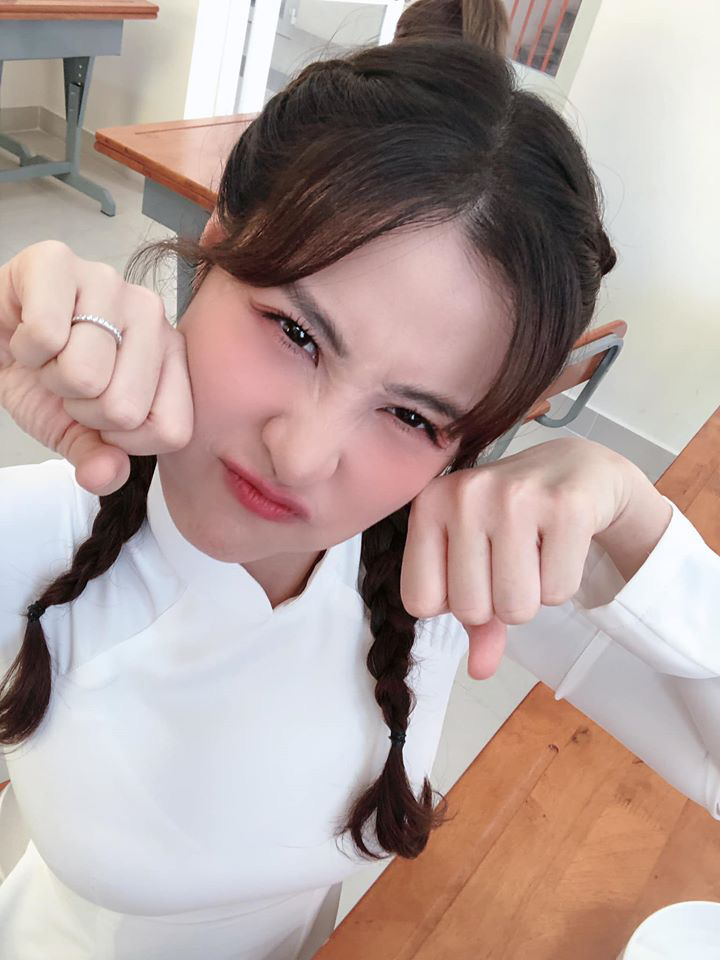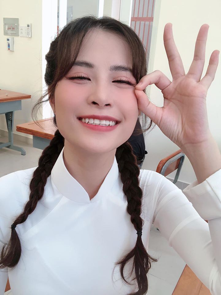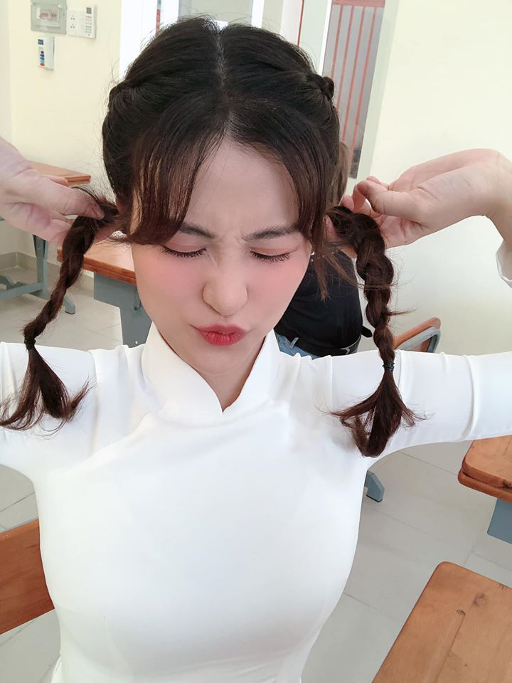 Đi kèm với những bức ảnh diện áo dài trắng đẹp như thiếu nữ này, Đông Nhi thừa nhận: "Bộ ảnh chủ đề: Chắc nghĩ mình đáng yêu của Nhi 16 tuổi. Mong cả nhà thông cảm cho bé vì đang độ tuổi dậy thì mà cô Nhi 31 vắng nhà nhé!".