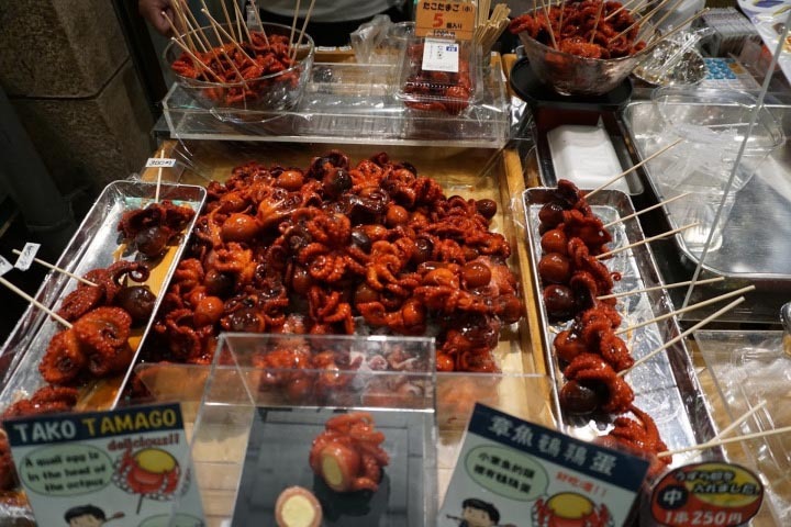 Món ăn lạ và ngon nhất thế giới, Takotamago là một con bạch tuộc tí hon được xiên que, nướng chín cùng với nhiều gia vị đặc biệt và nước sốt. Món ăn này có ở hầu hết các chợ ở Kyoto và gây nghiện cho mọi thực khách.