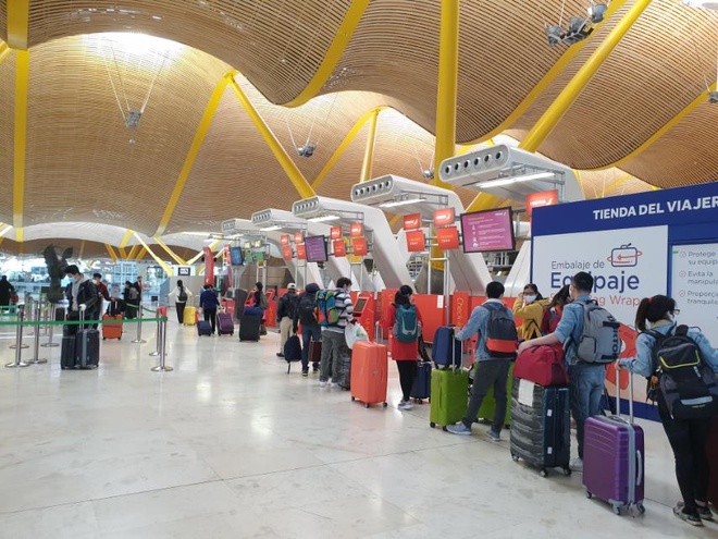 Công dân Việt Nam đón chuyến bay về nước tại sân bay thành phố Madrid. Ảnh: Bộ Ngoại giao.