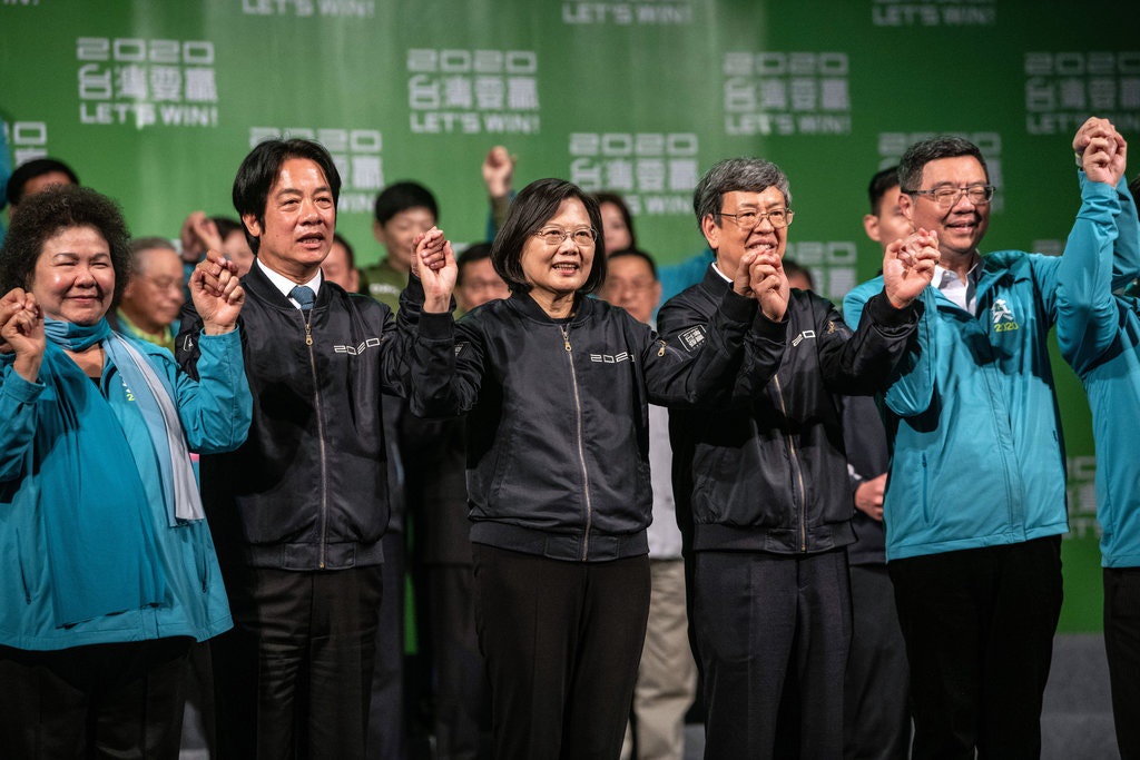 Nhà lãnh đạo Đài Loan Thái Anh Văn (giữa) sau chiến thắng trong cuộc bầu cử hồi tháng 1. Ảnh: Getty.