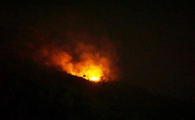 Khu vực cháy nằm trên đỉnh núi cao, dốc đứng, trời tối khiến lực lượng PCCC Công an TP Đà Nẵng, lực lượng kiểm lâm TP Đà Nẵng không thể tiếp cận điểm cháy.