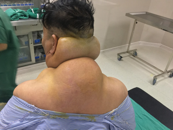 Ban đầu, những khối u chỉ là những khối nhỏ phát triển chậm, mềm, không gây đau cho bệnh nhân. Hai năm nay, những khối u phát triển to dần, tạo thành nhiều khối sau cổ và gáy khiến cổ bệnh nhân biến dạng, ngửa cổ khó khăn, không thể nằm ngửa.