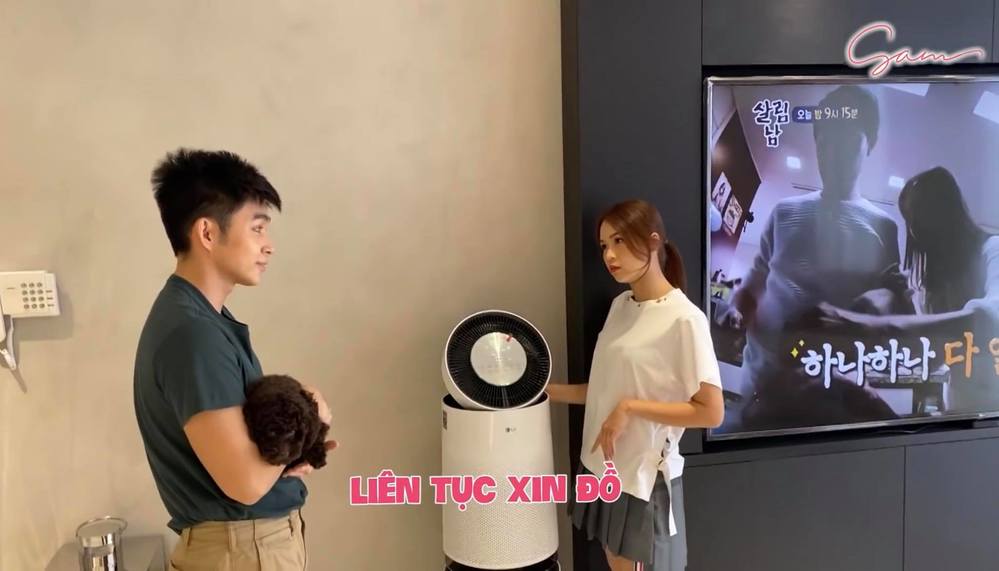 Tiếp đến, khi thấy chiếc máy lọc không khí giá hơn 30 triệu mà Sam có đến 2 cái, Jun cũng thắc mắc sao cô nàng không cho mình một cái khiến Sam cũng "đứng hình". Với mọi thứ trong nhà đều được tự động hoá, Sam lí giải: "Vì Sam làm biếng nên mọi thứ trong nhà đều được tự động hóa hết, chỉ cần nhấn nút là xong".