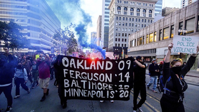 Người dân TP Oakland, bang California biểu tình phản đối cái chết của nạn nhân George Floyd (Ảnh chụp ngày 29/5). Ảnh: CNN