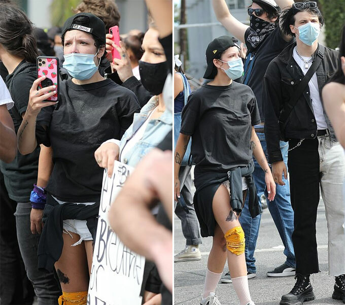 Hàng loạt nghệ sĩ đã lên tiếng đòi công lý cho George Floyd và quyền của người da đen nói chung thông qua mạng xã hội. Không dừng lại ở đó, họ còn xuống đường để phản đối tình trạng bất công và phân biệt chủng tộc. Nữ ca sĩ nhạc pop Halsey băng bó chân diễu hành cùng bạn ở Los Angeles.