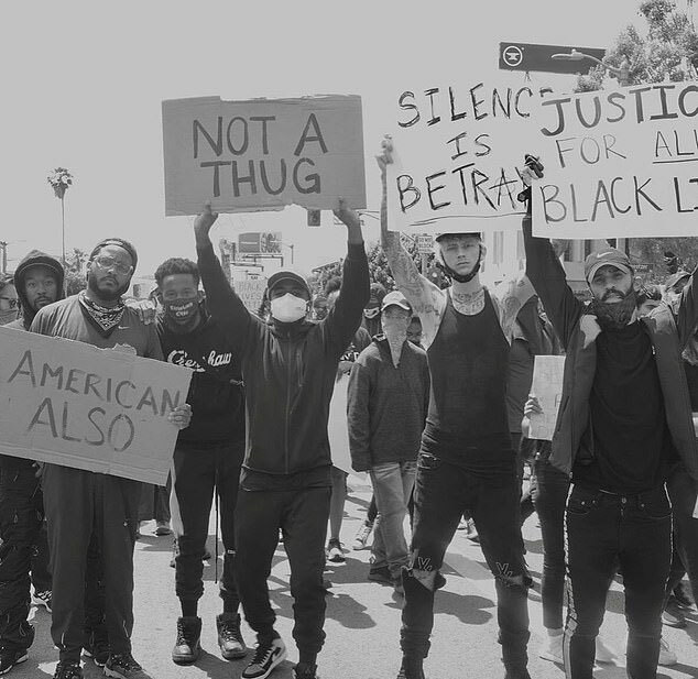 Rapper Machine Gun Kelly - bạn trai mới của Megan Fox (thứ hai từ phải sang) - đứng cùng hàng ngũ với những người da màu.