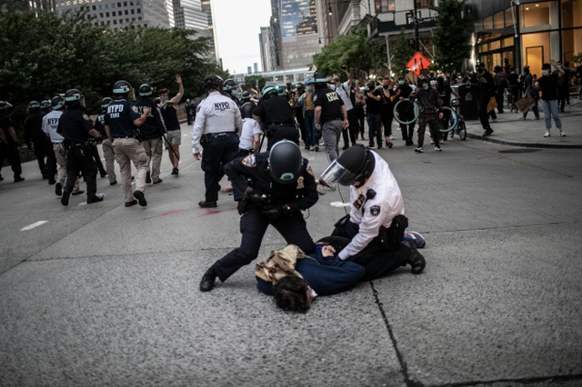Cảnh sát bắt giữ người biểu tình vi phạm lệnh giới nghiêm ở thành phố New York. (Ảnh: EPA)