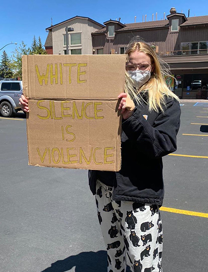 Turner mặc đồ ngủ, đeo khẩu trang và cầm trên tay tấm biển có dòng chữ "Người da trắng. Im lặng là bạo lực". Cô cùng chồng và bạn thân, nữ ca sĩ Paris Carney, hòa vào dòng người tới một công viên ở Los Angeles. Tại đây, tất cả quỳ một chân - tái hiện hành động viên cảnh sát ghì gối George Floyd - và hô các khẩu hiệu phản đối phân biệt chủng tộc.