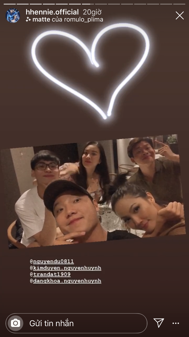 Trái ngược với loạt động thái của Tuấn Khôi, H'Hen Niê vẫn thường xuyên update lịch trình làm việc và hẹn hò cùng hội bạn trên Instagram. Mới hôm qua thôi, nàng Hậu vẫn còn hí hửng đi ăn với stylist riêng và Á Hậu Kim Duyên.