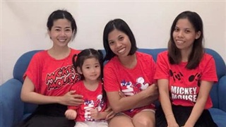 Mai Phương, bé Lavie và hai cô bảo mẫu