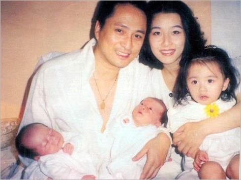 Thang Trấn Nghiệp bên người vợ đầu và 3 con.