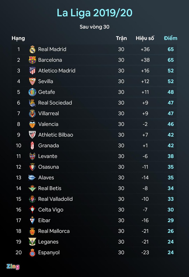 Trong 11 trận đã qua tại La Liga, Barca của Setien đã thua 2 trận, hòa 1, con số vừa đủ để Real vượt mặt trên bảng xếp hạng. Trong cả 3 lần Barca để mất điểm này, Messi đều không lên tiếng. 8 chiến thắng còn lại của Barca đều là các trận đấu siêu sao người Argentina ghi bàn hoặc kiến tạo.