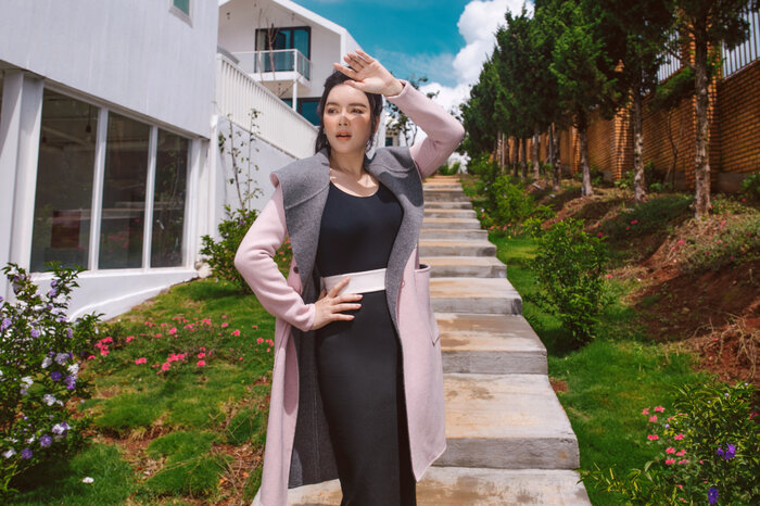Bộ ảnh cũng cho thấy phong cách ăn mặc sang chảnh của Lý Nhã Kỳ với áo măng tô, vest tuyn thời thượng.