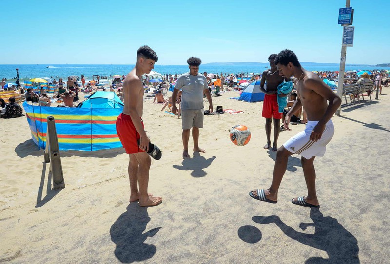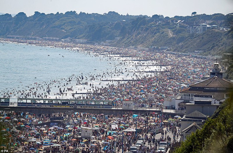 Khung cảnh mọi người tụ tập trên bãi biển ở Bournemouth, sau khi Anh chính thức ghi nhận ngày ấm nhất trong năm.