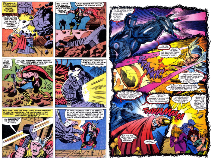Trong thời gian những Celestial tiến hành cuộc đổ bộ thứ tư nhằm phán xét sự tồn vong của Trái Đất, Odin đă chế tạo nên bộ giáp Destroyer từ Uru để chiến đấu với họ. Destroyer vốn được giấu bên trong Ngôi đền Bóng tối, nhưng sau đó bị Loki sử dụng để âm mưu hăm hại Thor. Kể từ đó, nó được Odin, Frigga, Loki, nữ hoàng số mệnh Karnilla, gă phản diện Diablo, … và mới đây nhất là Kid Loki, một phiên bản trẻ tuổi của Loki sử dụng trong chiến đấu.