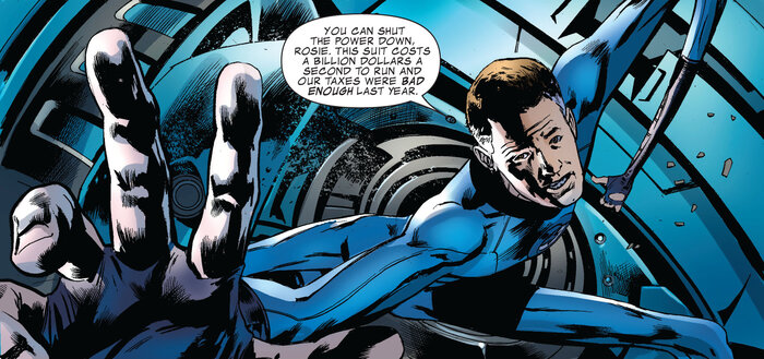 Chắc chắn rằng, Tony Stark không phải là thiên tài duy nhất biết chế tạo giáp, mà đa số các thiên tài đều có thể chế tạo ra những phiên bản của riêng họ. Một trong số đó chính là Reed Richards, bộ năo của Fantastic Four.