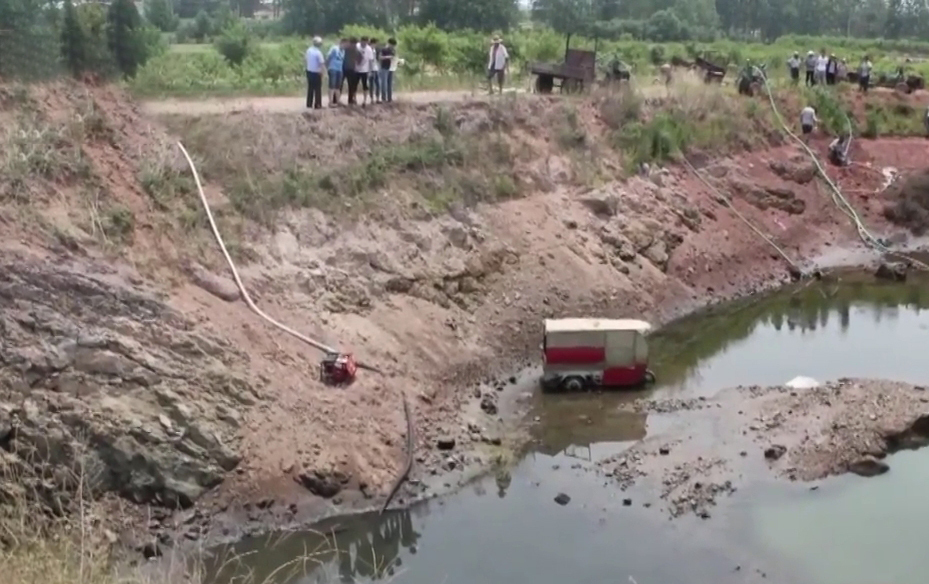 Chiếc xe ba gác chạy điện được tìm thấy khi người dân tát nước trong hồ để cứu hạn. Ảnh: CCTV.