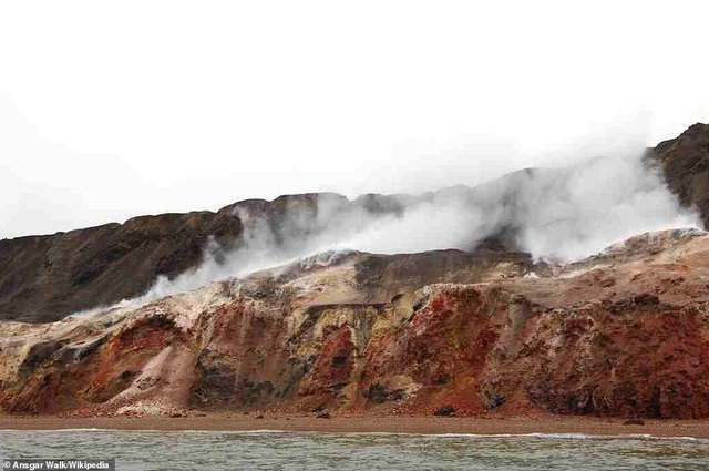 Suốt nhiều năm, khí lưu huỳnh đioxit đốt cháy làm thay đổi độ oxit của ngọn đổi khiến hệ sinh thái tại đây thay đổi. Những lớp đá nung dưới sức nóng đã chuyển thành màu đỏ, cam rực rỡ trên vách đá, xuất hiện mờ ảo dưới lớp khói.