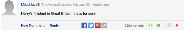Chưa rõ dụng ý thật sự của vị cựu Công tước là gì sau những lời nói động chạm trực tiếp trên, nhưng ngay sau động thái khó hiểu này, hàng nghìn người dùng mạng xã hội đã đồng loạt dậy sóng và để lại nhiều bình luận mang tính chỉ trích mạnh mẽ, nhắm thẳng vào Harry. Thậm chí nhiều người còn cho rằng, Harry đang bị vợ của mình "giật dây" phía sau như một con rối và Meghan Markle từ khi về làm dâu Hoàng gia Anh đã không có sự ủng hộ cho Khối thịnh vượng Anh Quốc của Nữ hoàng.