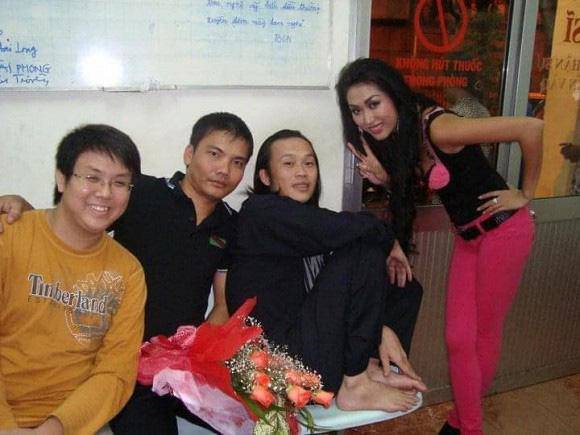Nghệ sĩ Gia Bảo (ngoài cùng bên trái) trẻ trung trong ảnh Phi Thanh Vân chia sẻ cách đây 10 năm. Riêng nghệ sĩ Hoài Linh với mái tóc dài và dáng ngồi "không lẫn với ai được".
