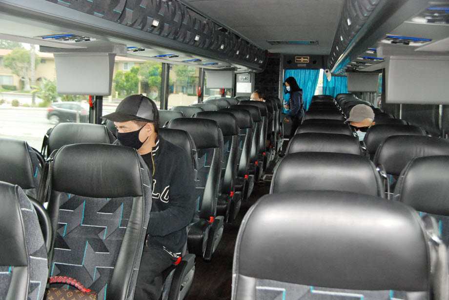 Chuyến xe đi từ Little Saigon lên San Jose ngày 1 Tháng Bảy chỉ có bốn khách. (Hình: Đoan Trang/Người Việt)