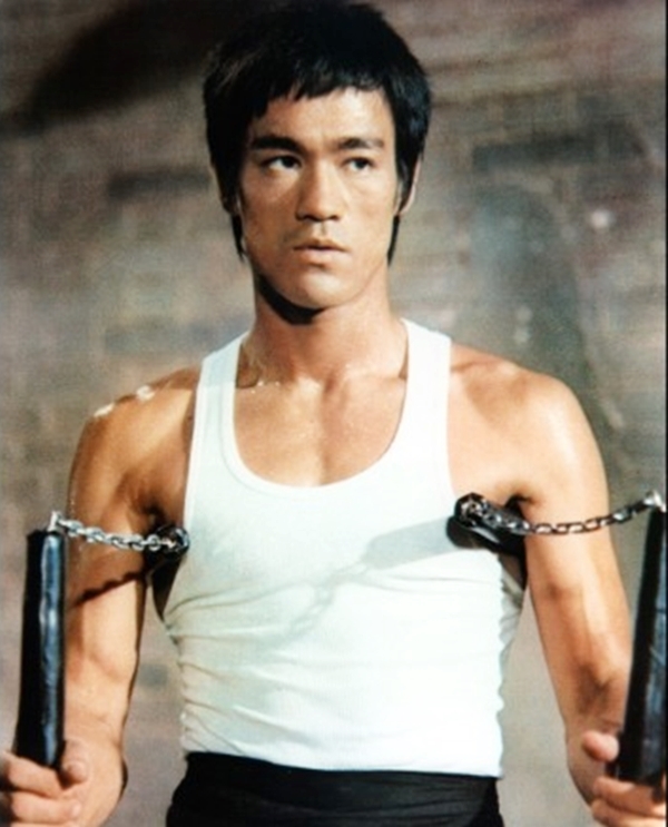 Lý Tiểu Long bên chiếc côn nhị khúc - vũ khí đặc trưng của ông. Ảnh: CNN.