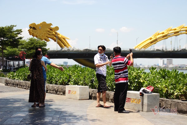 Một nhóm khách Hà Nội cho biết, vừa đến Đà Nẵng thì nhận thông tin ca bệnh nhiễm Covid-19 nên từ ngày 25/7 đến nay chỉ dạo chơi ở bãi biển, không dám ngồi uống cà phê. Mọi người đều đeo khẩu trang và chuẩn bị nước rửa tay khô mang theo.