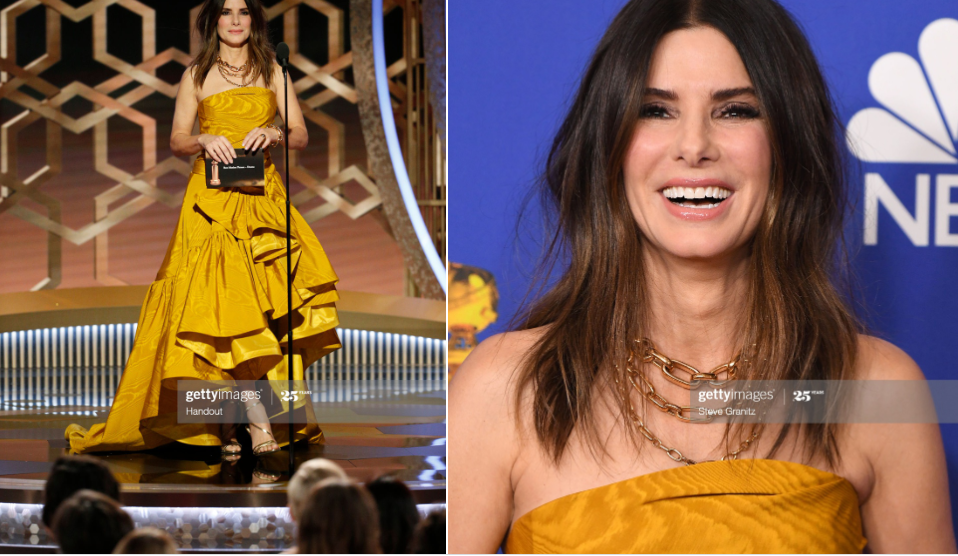 Sandra Bullock xuất hiện lộng lẫy trên sân khấu lễ trao giải Quả Cầu Vàng 2020 hồi tháng 1. Sau 3 thập kỷ theo nghệ thuật, cô được thế hệ đàn em khâm phục cho tinh thần cầu tiến, thái độ làm nghề nghiêm túc. Ảnh: Getty.