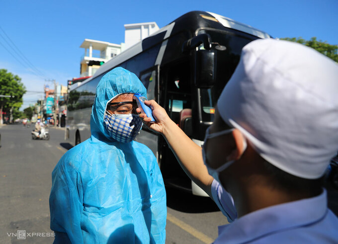 Bác sĩ Nguyễn Thành Trung, Phó giám đốc Bệnh viện Đà Nẵng, cho hay việc di chuyển người bệnh nhẹ nhằm giảm tải cho cơ sở y tế này. Các xe 45 chỗ và 29 chỗ liên tục ra vào khu vực phong toả để chuyển người đi. Trước khi qua chốt, chiến sĩ quân đội giúp lái xe mang đồ bảo hộ, nhân viên y tế đo thân nhiệt.