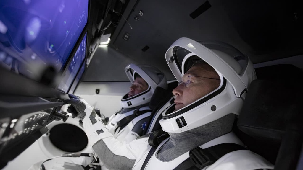 2 phi hành gia của Mỹ trong buồng mô phỏng kết nối tàu vũ trụ Dragon với Trạm vũ trụ quốc tế. Ảnh: NASA.