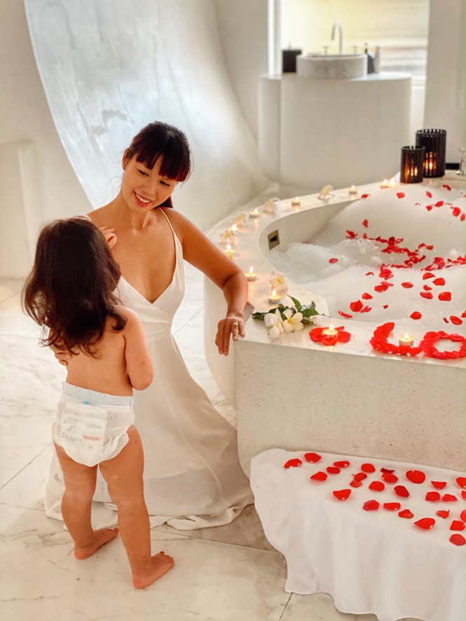 “Chúng tôi đều bận rộn với sự nghiệp riêng, tuy nhiên Myla vẫn là điều quan trọng nhất của cả hai. Hiện tại mọi quyết định của hai vợ chồng đều vì con gái bé bỏng. Cả hai muốn đưa Myla đi du lịch thật nhiều, trải nghiệm những điều thú vị về cuộc sống, giúp con hình thành tính cách và sự tự tin trước khi đi học mẫu giáo. Mỗi chuyến đi, Myla ngày càng dạn dĩ và điều đó khiến hai vợ chồng rất hạnh phúc”, Hà Anh nói.