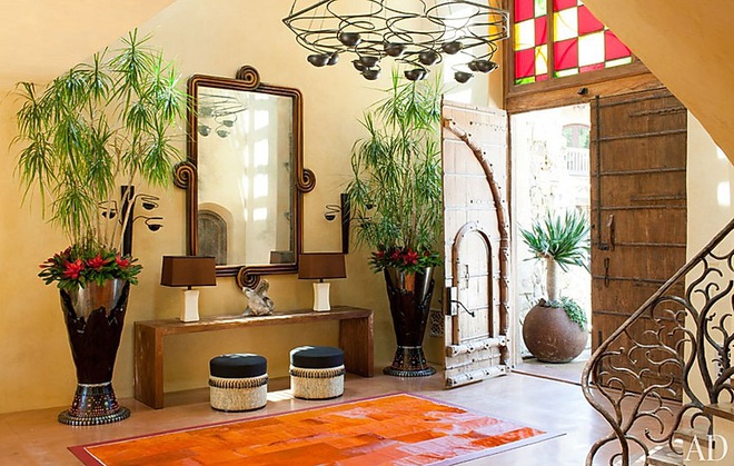 Tiền sảnh sáng sủa, mang những tông màu bắt mắt, rực rỡ, được tô điểm bằng những nội thất có họa tiết tinh xảo.