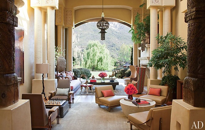 Căn biệt thự có thiết kế cầu kỳ, lạ mắt, rộng khoảng 2.300 m2 nằm trên khu đất rộng 60 ha. Biệt thự được miêu tả như một sự pha trộn hài hòa của các nền văn hóa khác nhau như Ba Tư, Morocco, Tây Ban Nha, vùng Tây Nam nước Mỹ.