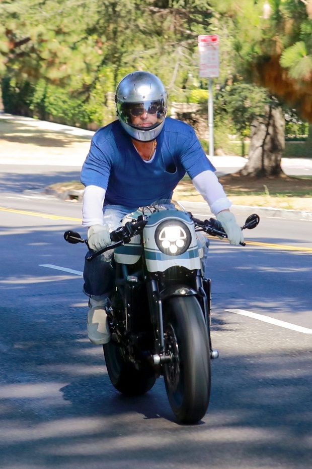 Brad Pitt rời khỏi nhà Angelina Jolie bằng môtô. Ảnh: The Sun.