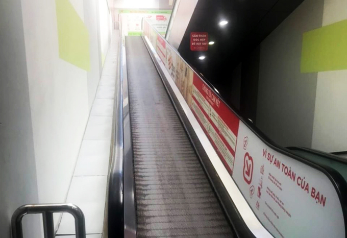 Thang cuốn tại siêu thị, nơi xe hàng trượt xuống tông chết cụ bà. Ảnh: Khánh Hương