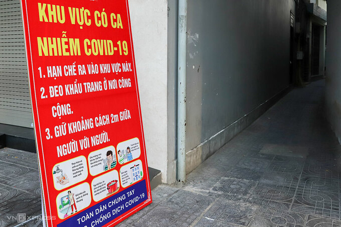 Một khu vực có ca mắc Covid-19 trên đường Lê Duẩn (Đà Nẵng) được đặt biển cảnh báo. Ảnh: Nguyễn Đông.