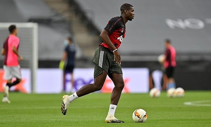 Pogba khởi động trước trận Man Utd - Sevilla ở bán kết Europa League vào ngày 16/8. Ảnh: Reuters.