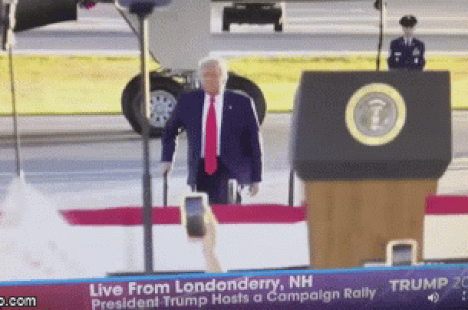 Đoạn video cho thấy ông Trump xuất hiện ở New Hampshire để vận động tranh cử vào hôm 28/8, một ngày sau khi chính thức nhận đề cử ứng viên tổng thống đại diện đảng Cộng hòa ra tranh cử. Ông Trump vẫy tay với người ủng hộ khi bước lên bục phát biểu và bất ngờ mất cân bằng, suýt ngã bậc thang.